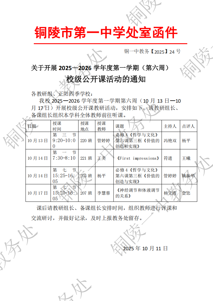 关于开展 2025—2026 学年度第一学期(第六周) 校级公开课活动的通知