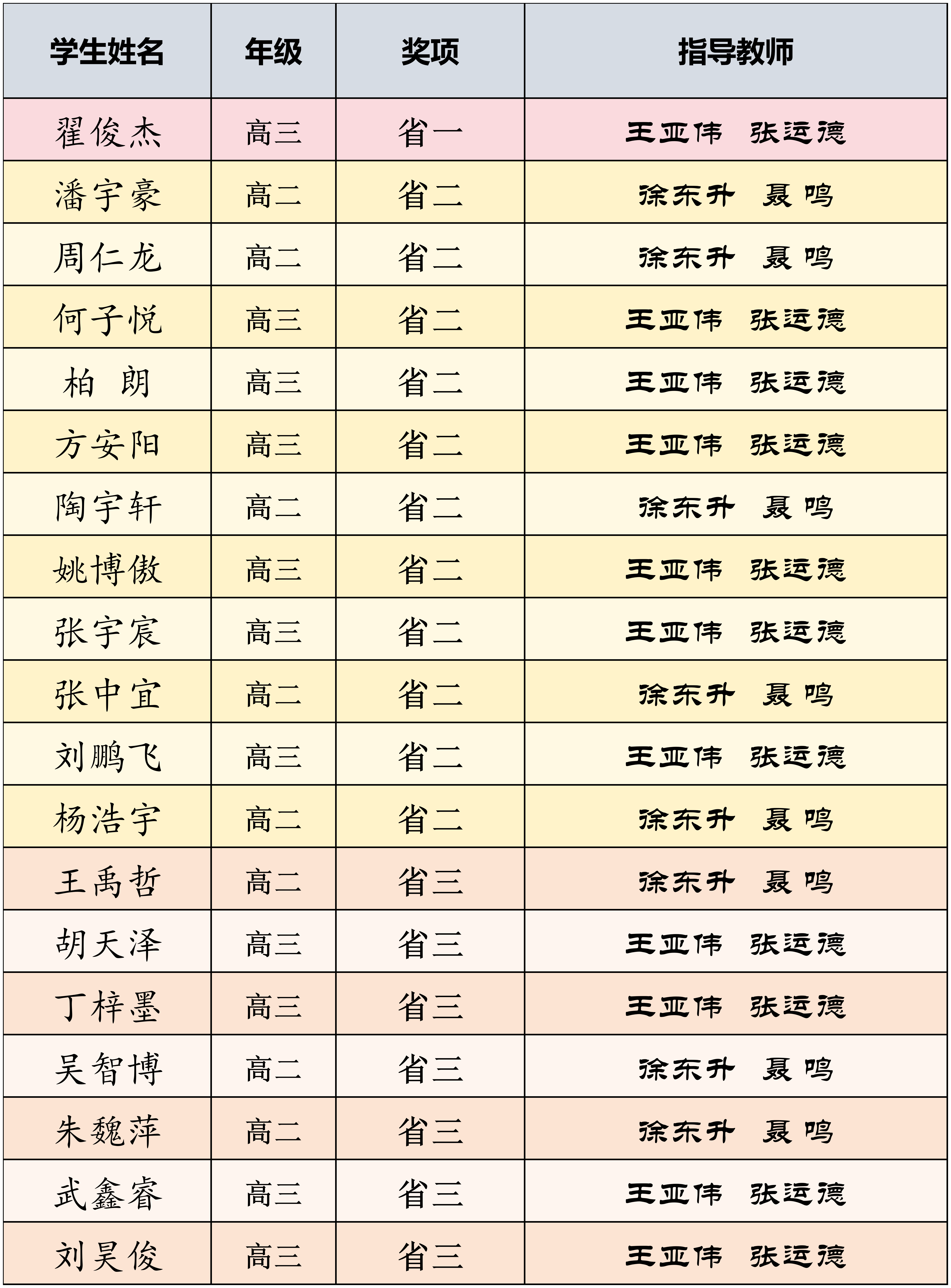 近日,2025年全国中学生物理奥林匹克竞赛(安徽赛区)获奖名单揭晓,我校在本次物理竞赛中高三翟俊杰同学荣获省一等奖、高二潘宇豪同学等11人荣获省二等奖、高二王禹哲同学等7人荣获省三等奖,奖项数量与质量均实现稳步提升。
