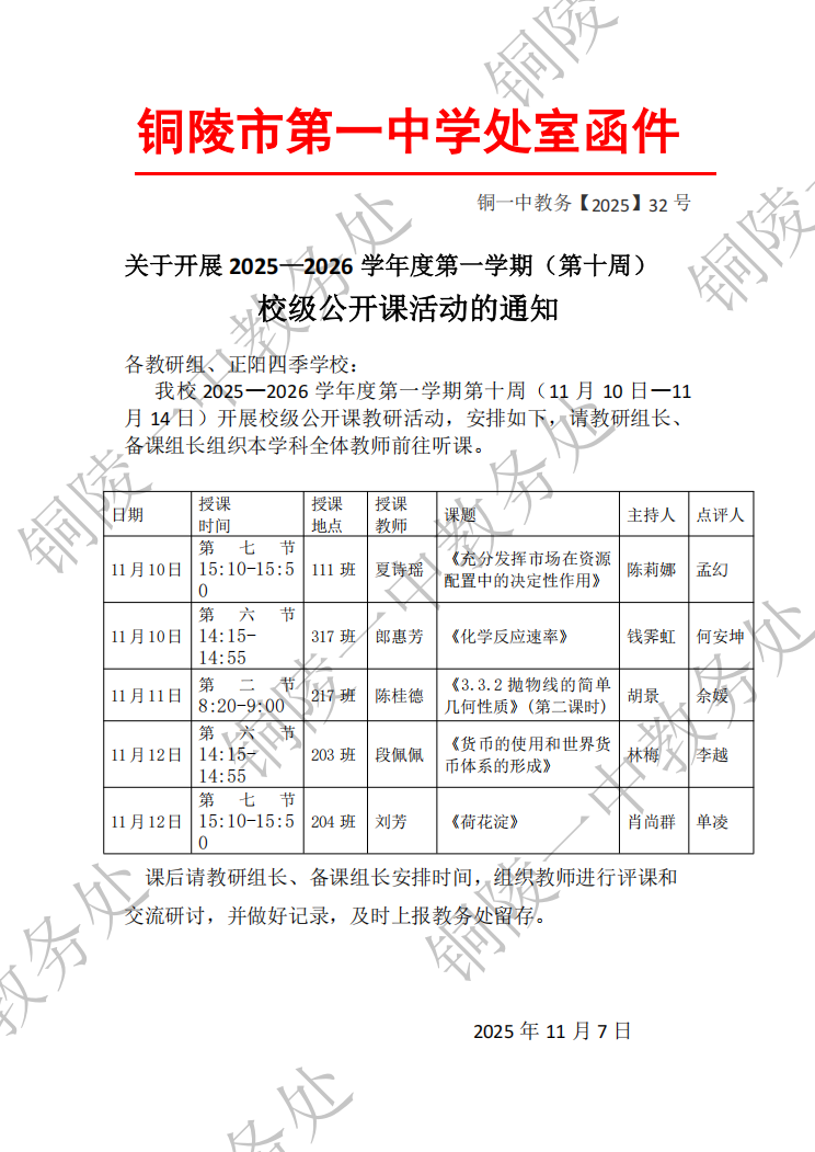 关于开展 2025—2026 学年度第一学期(第十周) 校级公开课活动的通知