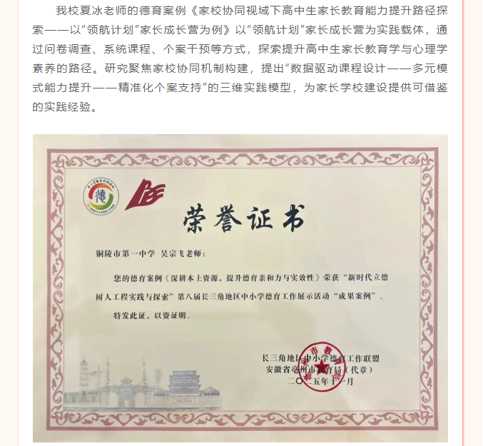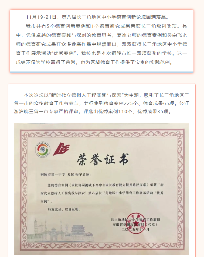 五育融合 | 我校德育案例和德育研究成果双获第八届长三角地区中小学德育工作“优秀案例”