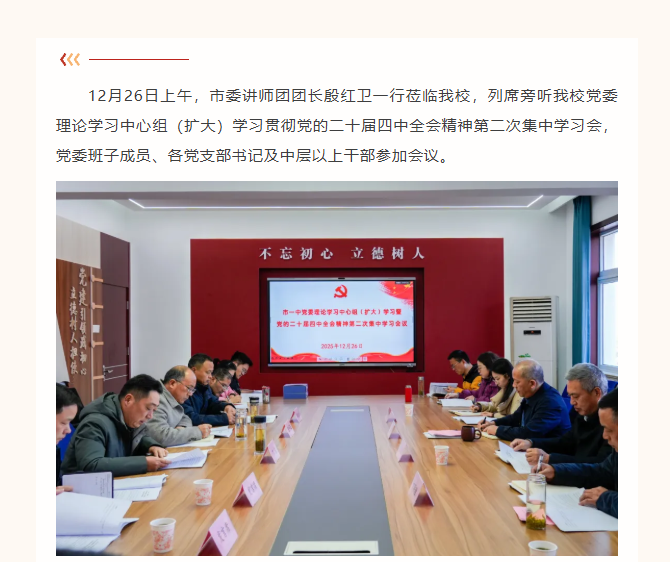 一中党建 | 市委宣传部列席旁听工作组列席我校党委理论学习中心组学习会