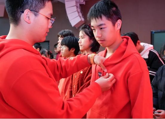 辅礽班的六名团支部书记作为优秀团员代表为新团员代表佩戴团徽,颁发团员证。证书虽轻,责任千钧;团徽闪耀,使命永葆。小小的动作代表的是接纳,是示范,更是期许与激励。