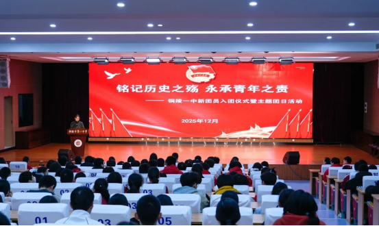 在12·13第十二个国家公祭日即将到来之际,为厚植家国情怀,扎实推进党团一体化育人链条有效衔接,12月12日上午9时,铜陵一中“铭记历史之殇,永担青年之责”新团员入团仪式暨主题团日活动在辅礽图书馆报告厅庄严举行,近200名团员代表参加活动。仪式由校团委章婷婷老师主持。
