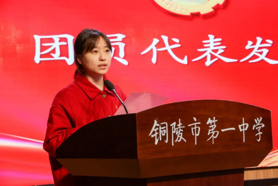仪式中,303班汤子琪同学代表新团员作主题发言。她回顾了建党的百年历史,结合中国青年在“五四”、长征和抗战等重大历史关头挺身而出的英勇事迹与担当精神,号召全体新团员从课堂学习、日常生活做起,践行“请党放心,强国有我”的青春誓言。
