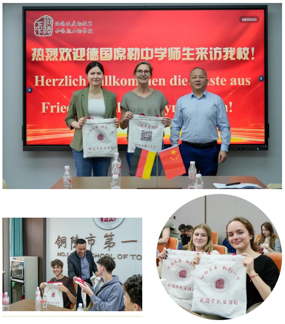 在之后举行的欢迎会上,汪小平首先对远道而来的德方师生表示热烈欢迎。在致辞中他介绍了学校近年来的发展情况,希望两校师生通过对话和交流深入理解双方的历史、文化和创新精神。席勒中学中文班老师Marion Rath和Stephanie Liang分别表达了对此次来铜之行的期待和对接待安排的感谢。之后,双方交换了精心准备的礼物,表达美好祝福。