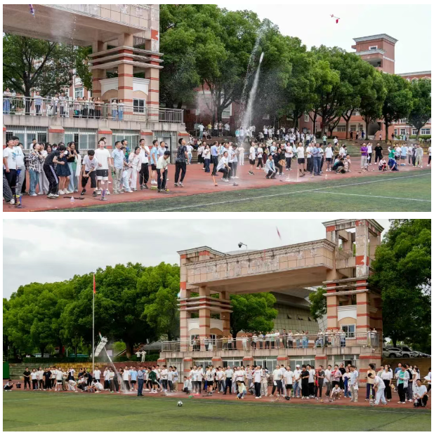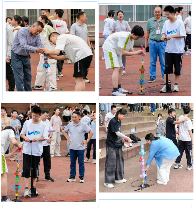 为激发学生科学探索精神,培养团队协作与实践能力,6月18日下午,我校高一年级在操场举办了创意水火箭挑战赛。本活动由政教处、高一物理备课组、校物理学会社团共同组织策划,全年级各班30余支队伍参与角逐,现场气氛热烈,展现出高一学子蓬勃的创造力与青春风采。