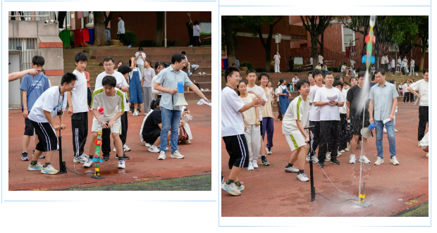 最终30几支队伍轮番登场,各式各样的火箭在操场上方腾空而起,引发围观学生的阵阵欢呼。高一(1)班程子豪同学表示:“调试阶段我们失败了十几次,但通过分析角度、水量和气压的关系,最终找到了最佳的发射条件!”