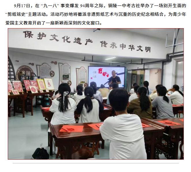 爱国教育 | 徽派非遗剪纸艺术携手“九一八”纪念日 传承历史记忆