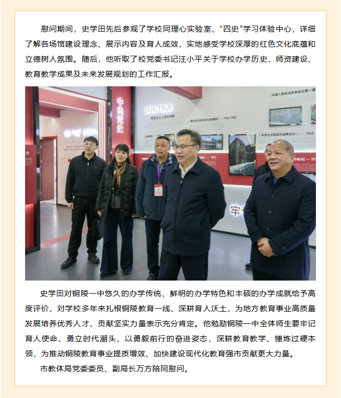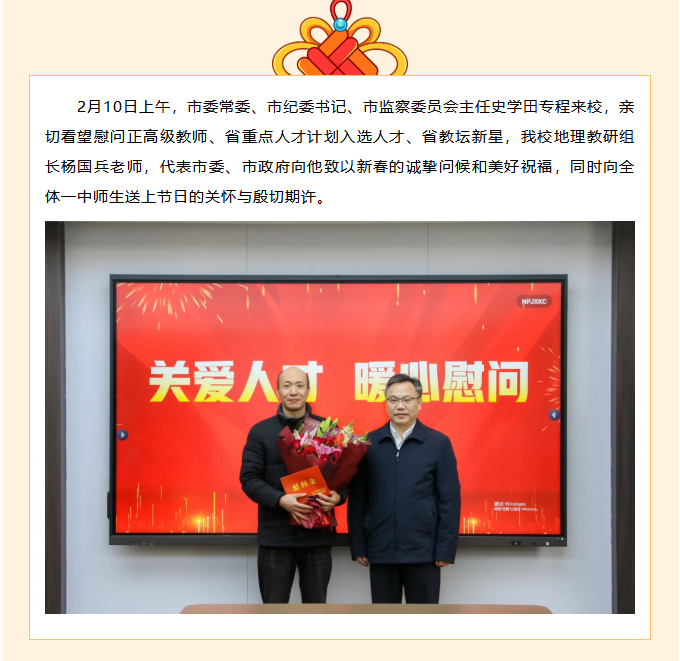 市委常委、市纪委书记、市监察委员会主任史学田来校慰问省重点人才计划入选人才杨国兵
