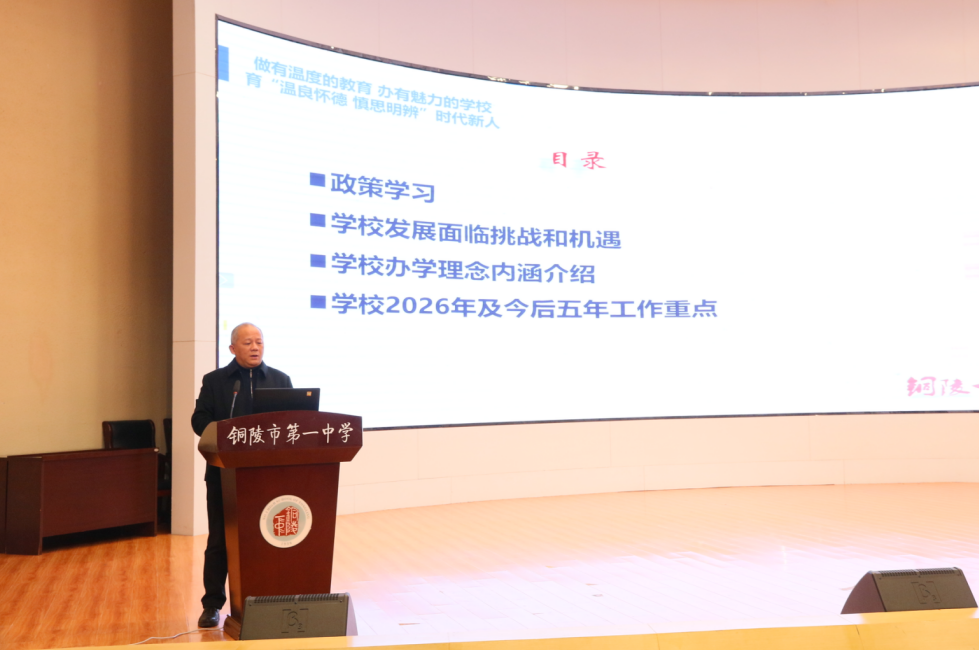为锚定长远发展,汪小平进一步解读了学校办学理念,明确了2026年及今后五年的工作重点。他强调,未来一段时期是学校推进高质量发展、创建研究型高中的关键阶段,全体教职工要秉持“实干攻坚,稳中求进”的工作基调,聚焦“理念先进、质量卓越、特色鲜明、辐射强劲”的研究型高质量示范高中建设目标,深耕育人主业,深化教育教学改革,优化课程体系,打造研究型课堂,培育学生核心素养,同时强化师资队伍建设,激发办学活力,推动学校实现从优质向卓越的跨越。