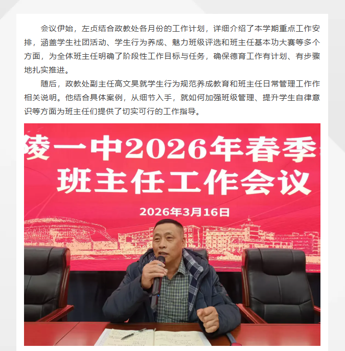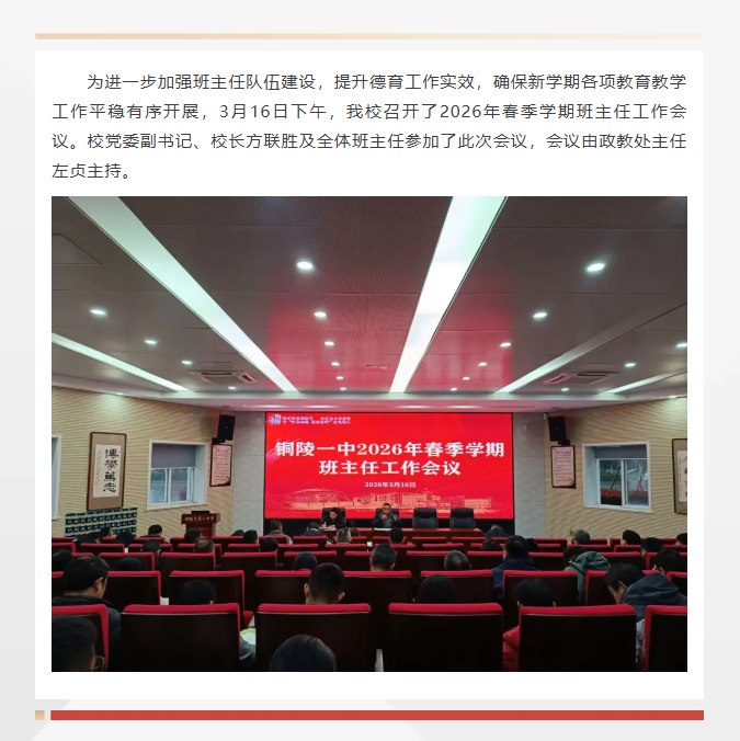 队伍建设 | 我校召开2026年春季学期班主任工作会议