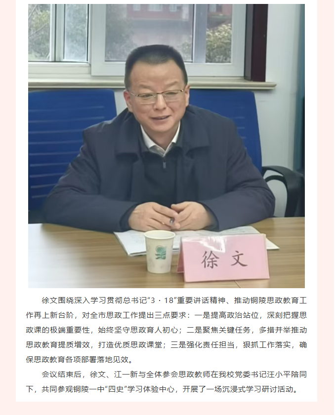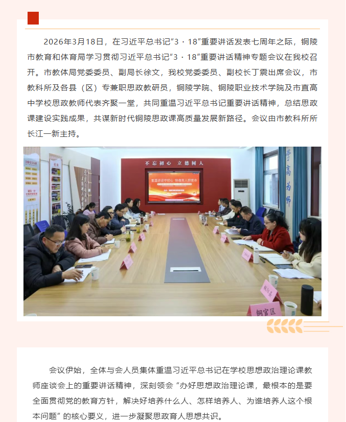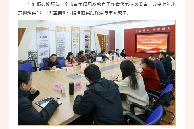 市教体局学习贯彻习近平总书记“3.18”重要讲话精神座谈交流会在我校举行