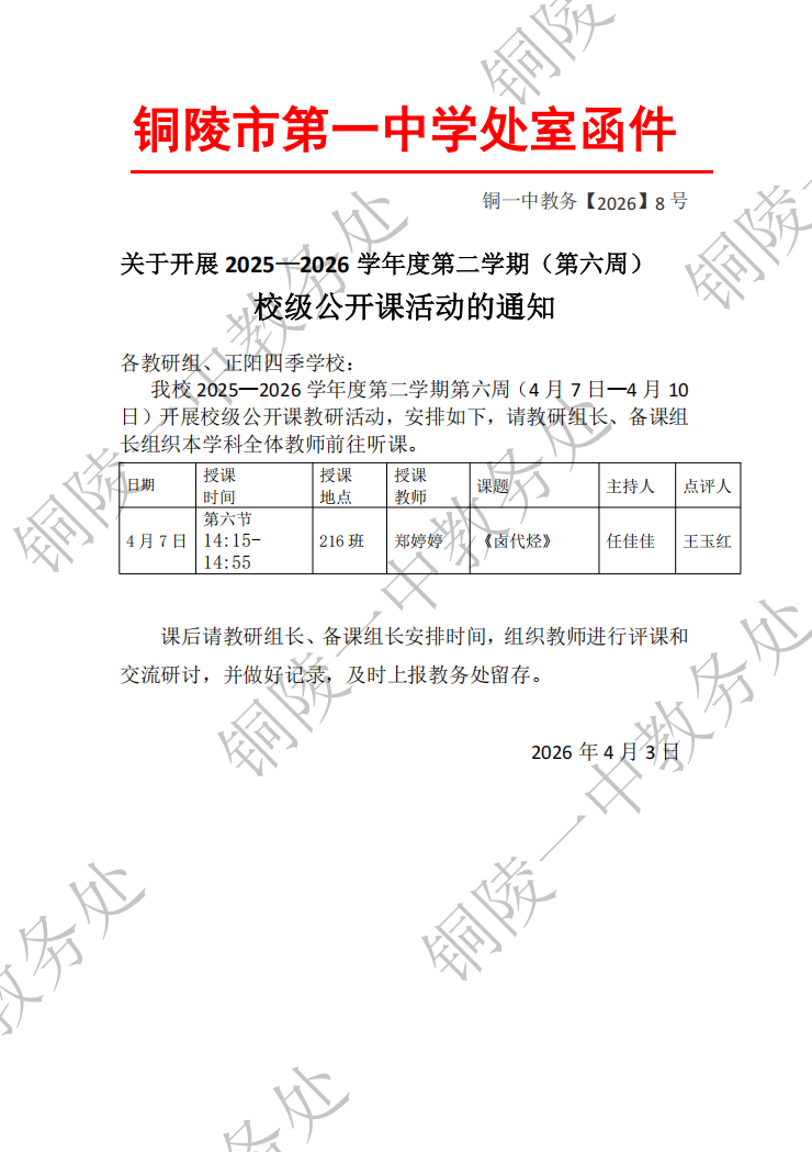 关于开展 2025—2026 学年度第二学期(第六周) 校级公开课活动的通知
