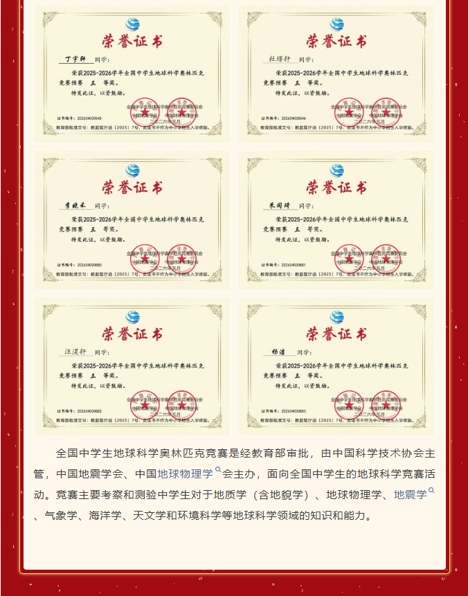 晋级全国决赛 | 我校在全国中学生地球科学奥赛预赛中喜获佳绩