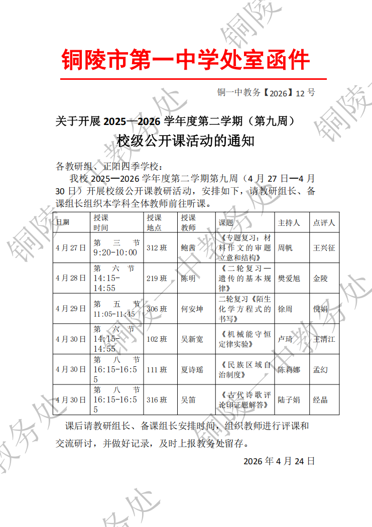 关于开展 2025—2026 学年度第二学期(第九周) 校级公开课活动的通知