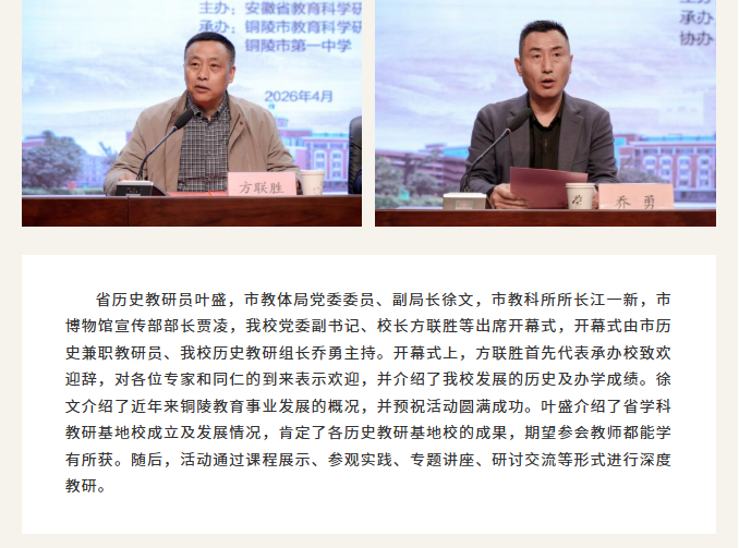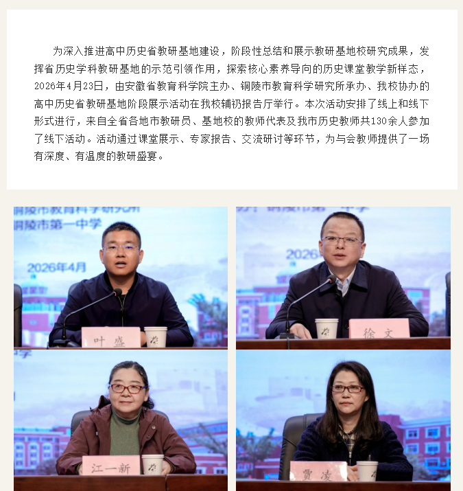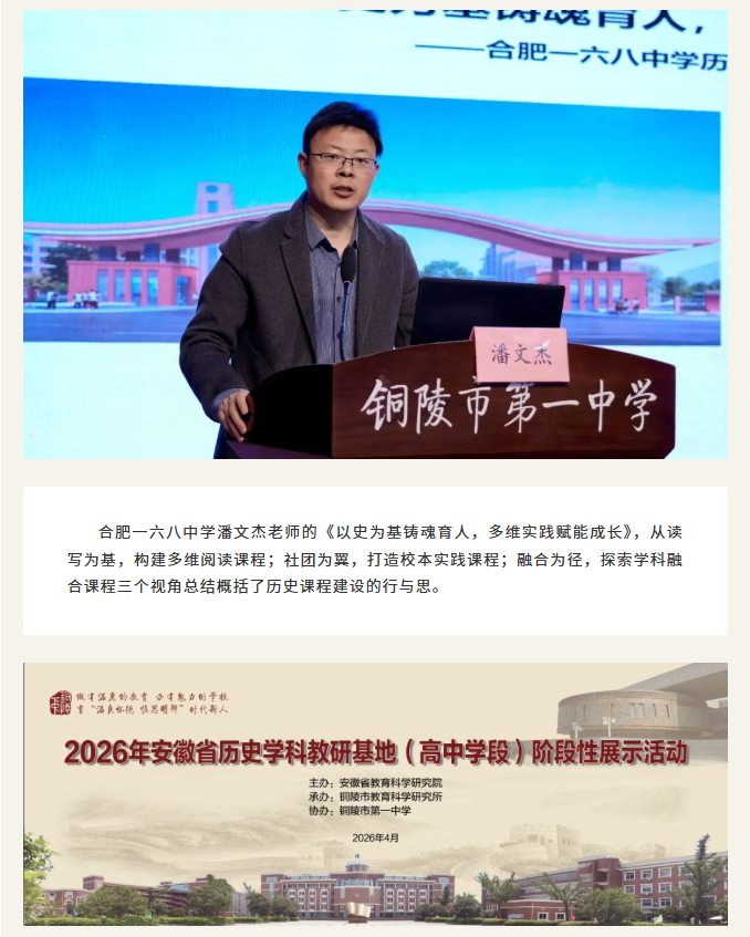 教研活动|2026年安徽省历史学科教研基地(高中学段)阶段性展示活动在我校举办
