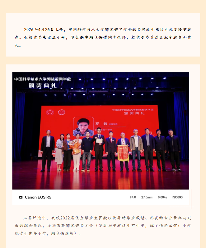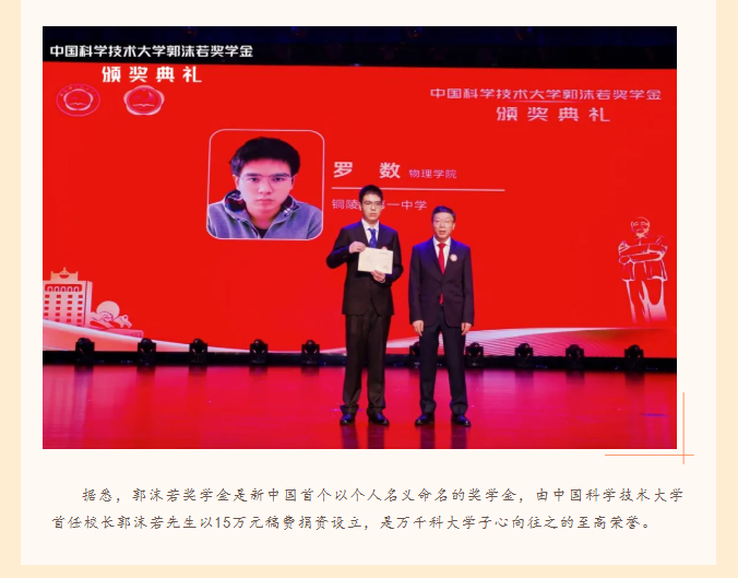 校友动态|罗数校友荣获中科大最高荣誉“郭沫若奖学金”