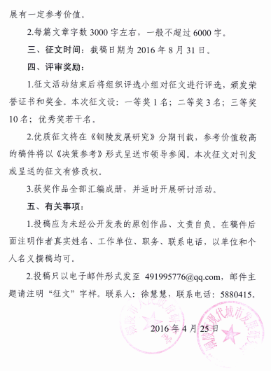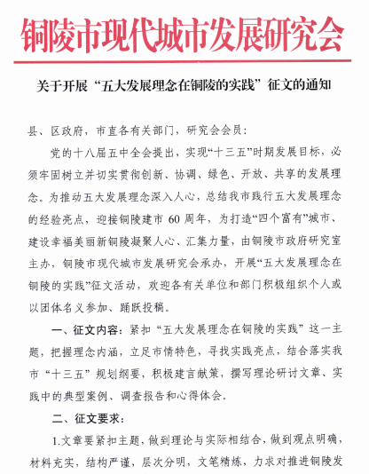 关于开展“五大发展理念在铜陵的实践”征文的通知