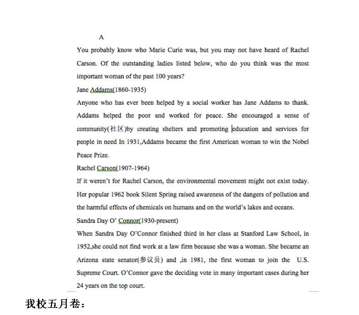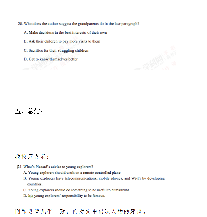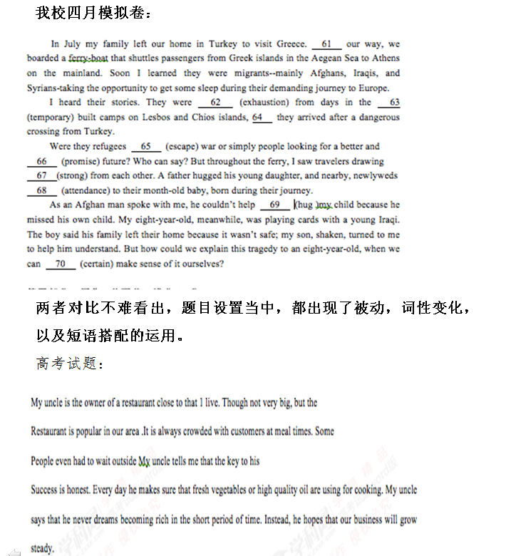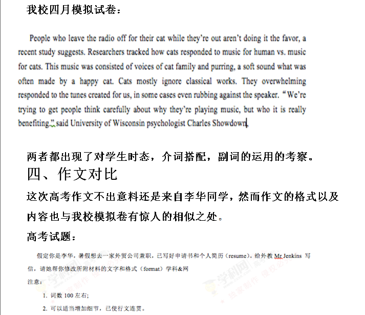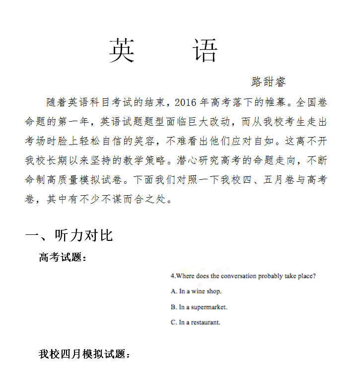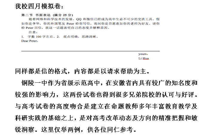 2016年铜陵一中四.五月卷与高考卷相似度比照~英语