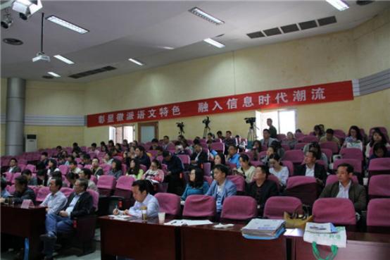 下午是课堂教学展示活动。蚌埠二中俞杨老师执教《水龙吟·登建康赏心亭》,马鞍山二中贾洁老师执教《促织》。课堂上,师生借助平板电脑与互联网技术进行资料查询、个性化解读、实时交流、广泛互动、成果展示,课堂内容广度与深度都迈上了一个新台阶,也引发听课老师们的热议。我校丁美安老师对两位执教老师进行了高度评价,并从语文教学理念、语文课堂功能、技术手段运用等方面对两节课予以详细分析;其他几位评课老师安师大附中刘纪春老师、安师大马长安教授也认为两位执教老师基本功扎实、教学理念先进、善于同学生互动。虽然两位老师新技术运用方面虽然还不够熟练,却是新兴技术与传统课堂相结合的一次大胆尝试。