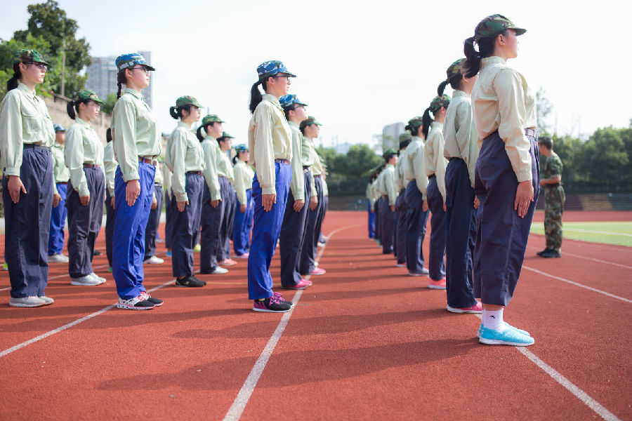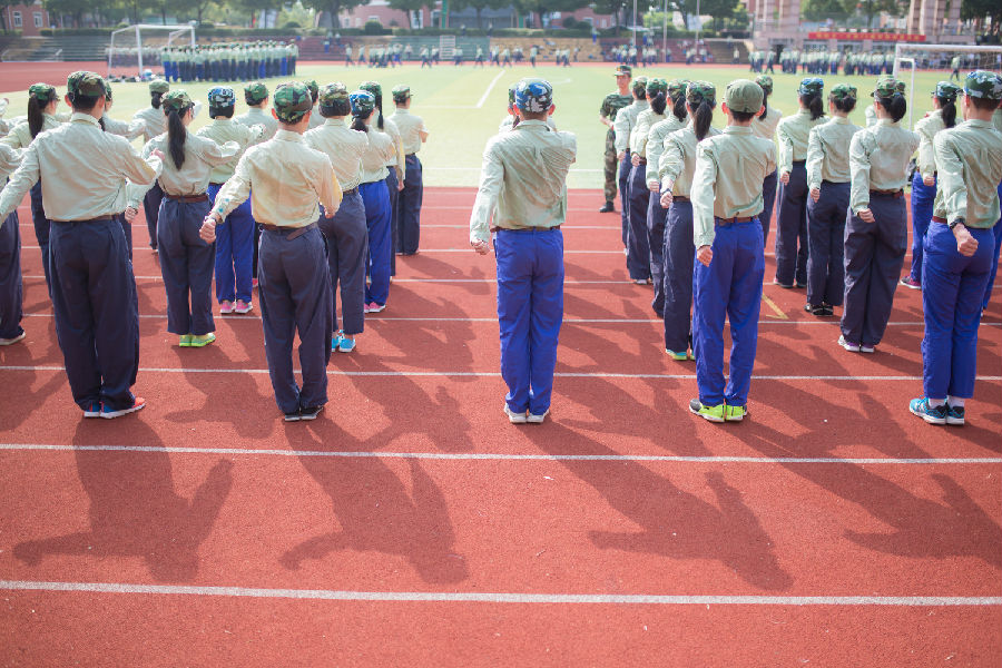 这是今天教官对我们说的最多的一句话。我明显感觉到今天训练的强度要大于昨天。持续保持摆臂的姿势,让酸痛感占满了我身体的全部。天公不作美,阳光炙热,我都能看到前排同学的背被汗水浸透,可是没有一个人喊累。我们心中都有一股不服输的意念。
