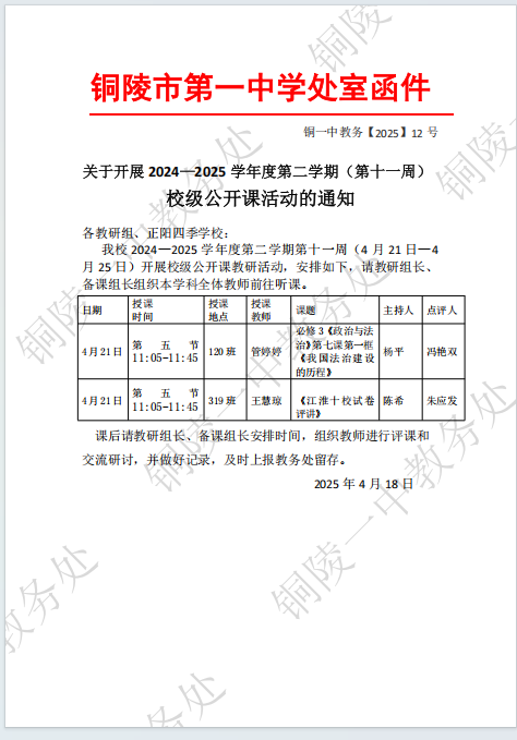 关于开展 2024—2025 学年度第二学期(第十一周) 校级公开课活动的通知