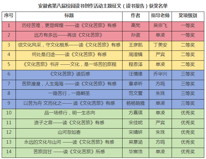 近日,安徽省第八届校园读书创作活动评选结果揭晓,我校师生表现优异,斩获多个奖项,充分展现了我校师生良好的精神风貌和扎实的文化素养。