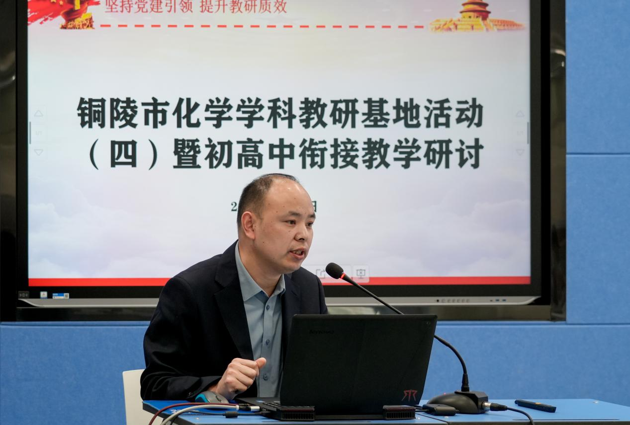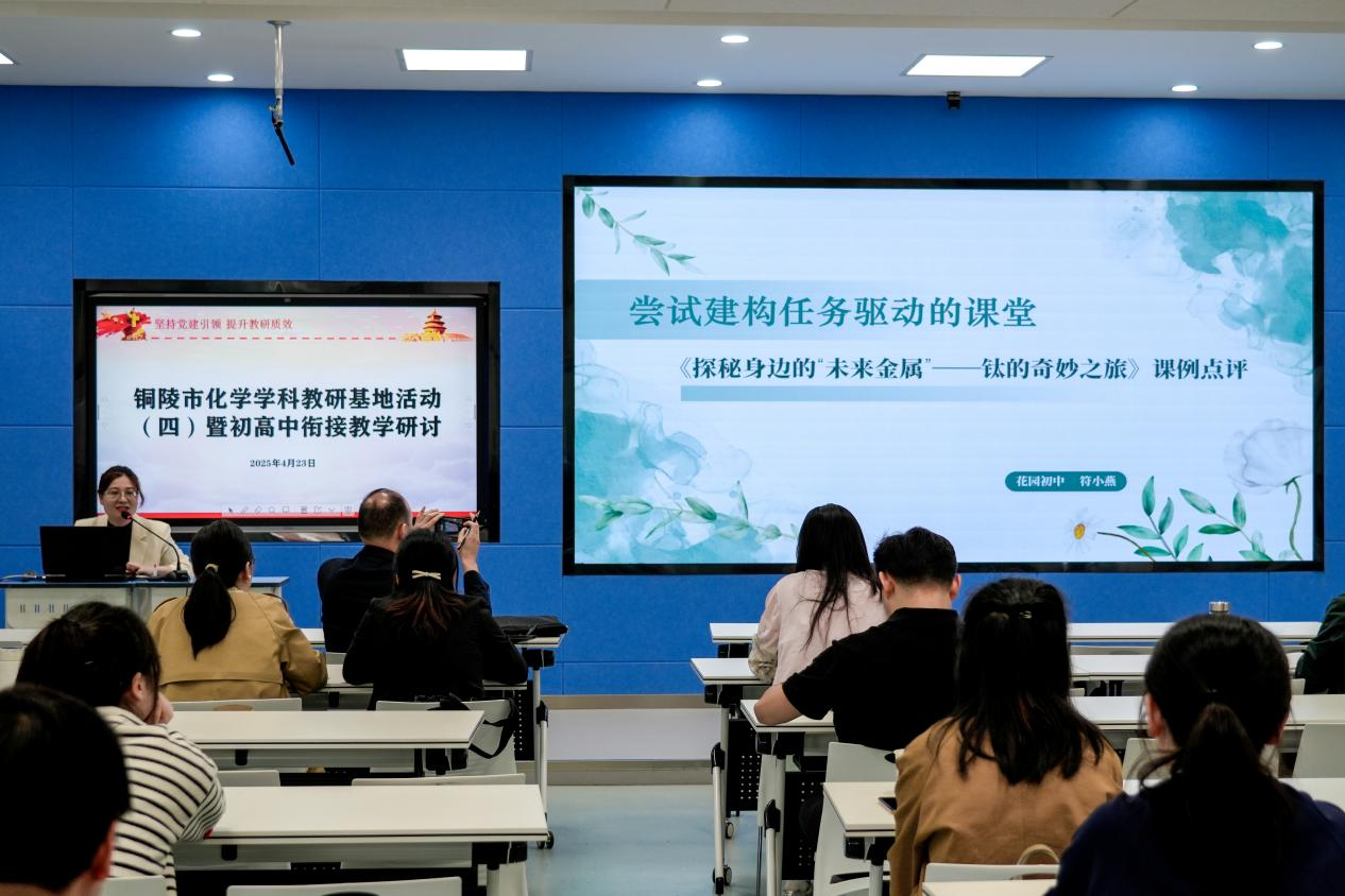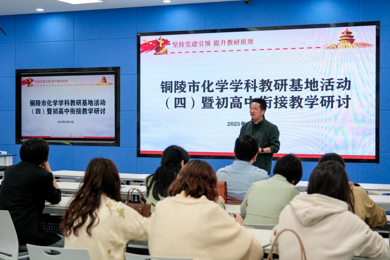 4月23日上午,铜陵市化学学科教研基地暨初高中衔接教学研讨活动在我校图书馆二楼教研一体化教室举行。本次围绕"开展进阶学习·聚焦初高中衔接"主题展开深度研讨,我校充分发挥示范校作用,通过教学展示、专家引领、互动研讨等形式,搭建初高中衔接教学实践交流平台。