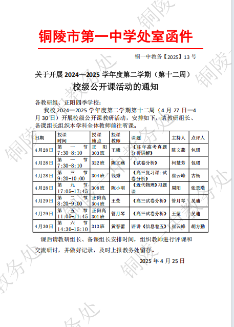 关于开展 2024—2025 学年度第二学期(第十二周) 校级公开课活动的通知