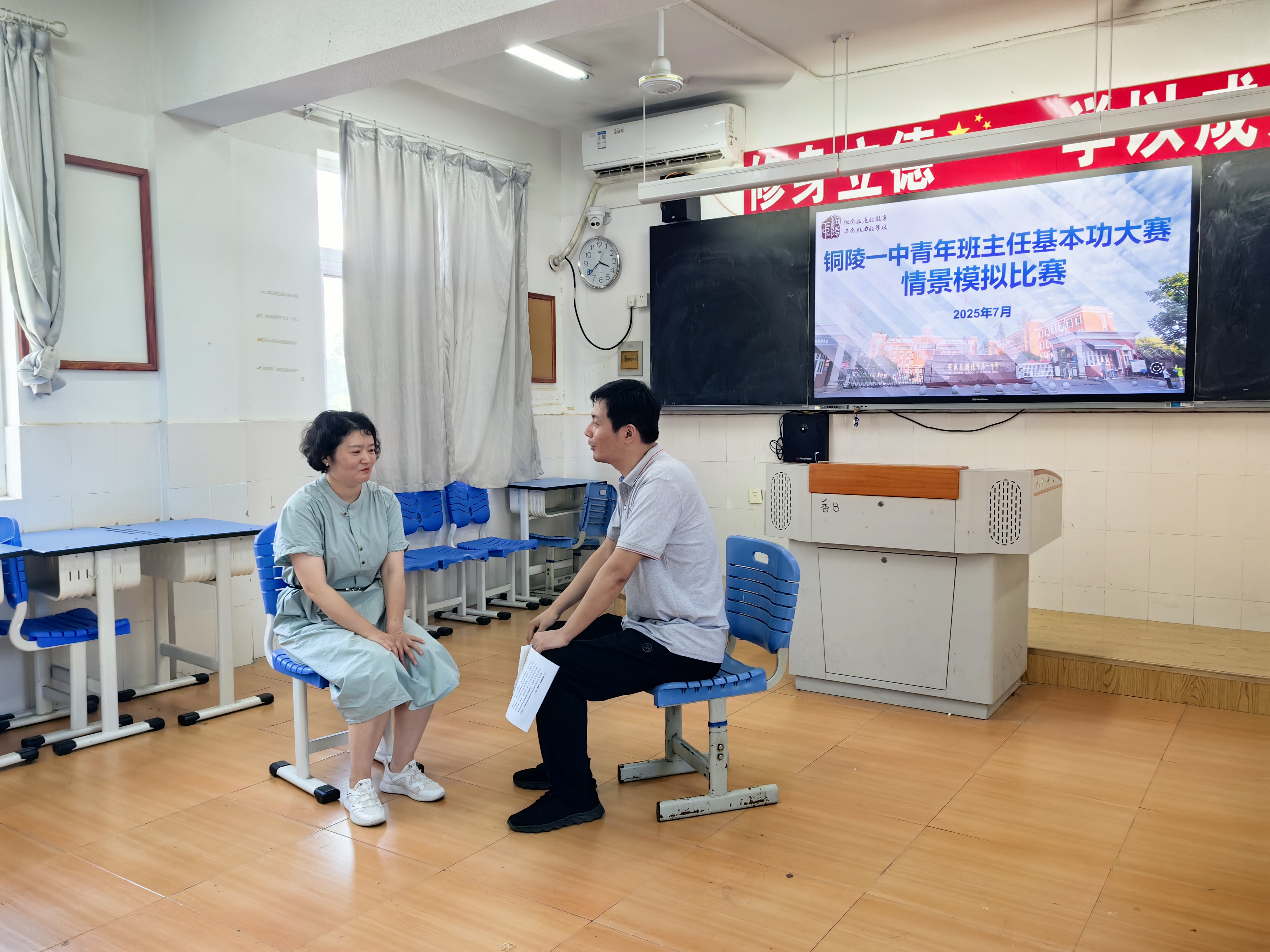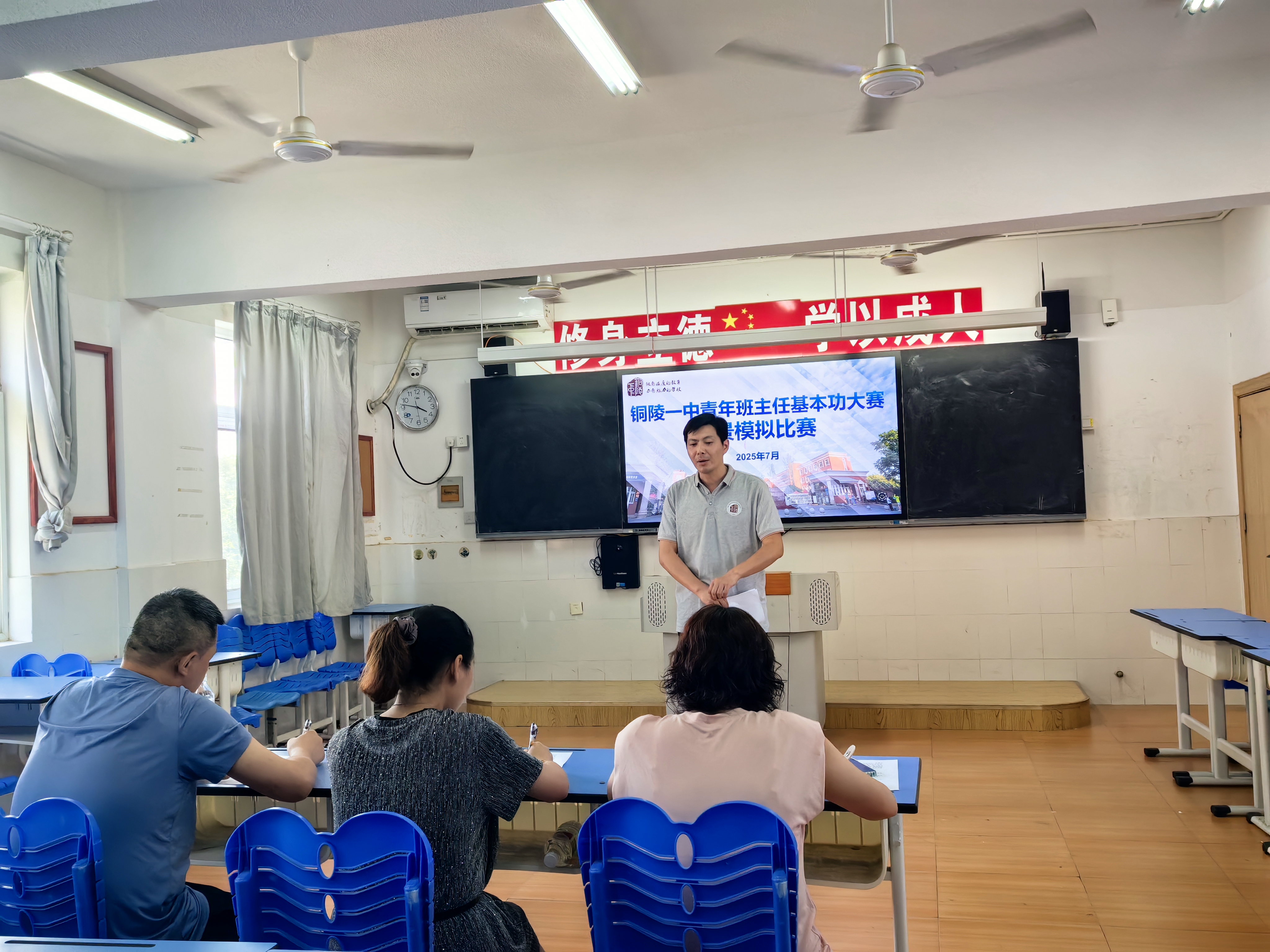 为提升青年班主任专业素养和育人能力,7月7日下午,铜陵一中举办青年班主任基本功大赛情景模拟比赛。本次情景模拟比赛以贴近校园生活的真实教育场景为蓝本,涵盖学生矛盾调解、家校沟通不畅、青春期心理疏导等多个典型教育情境。参赛班主任现场随机抽取题目,在5分钟准备时间内迅速分析问题根源,并提出切实可行的解决方案,充分考验临场应变能力与教育实践水平。