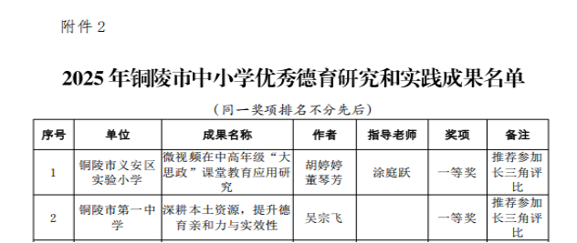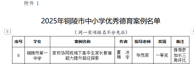 2025年铜陵市中小学优秀德育案例和德育实践成果铜陵一中获奖名单