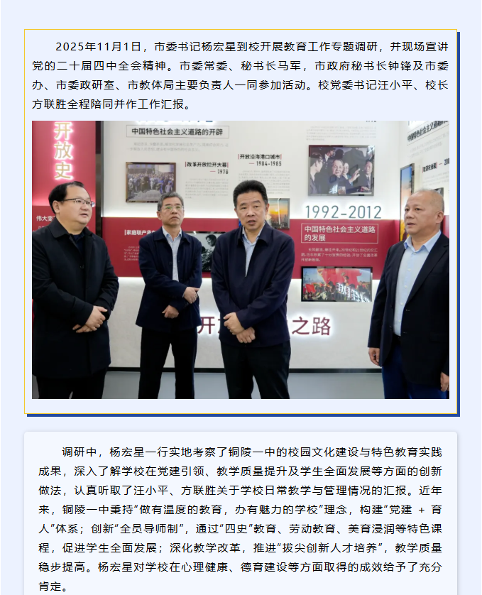 市委书记杨宏星到校调研并宣讲党的二十届四中全会精神