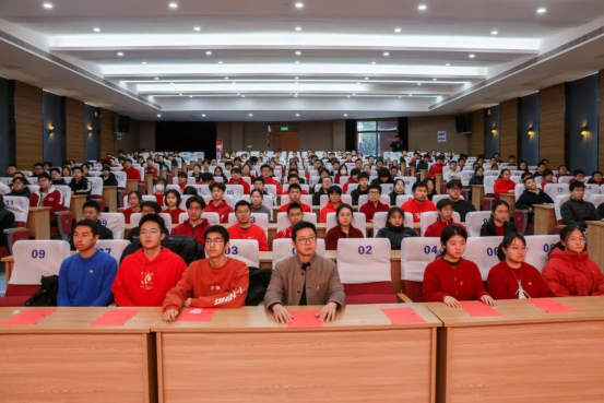 在203班团支书毕宸浩同学的带领下,全体新团员面向团旗庄严宣誓。“我志愿加入中国共产主义青年团……”铮铮誓言在报告厅内回荡,同学们喊出的是他们坚定跟党走、奋进新时代的力量与决心。