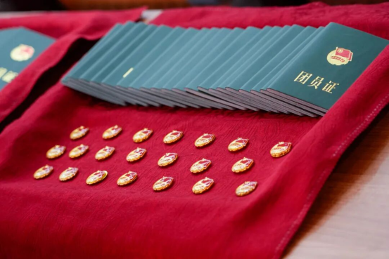 辅礽班的六名团支部书记作为优秀团员代表为新团员代表佩戴团徽,颁发团员证。证书虽轻,责任千钧;团徽闪耀,使命永葆。小小的动作代表的是接纳,是示范,更是期许与激励。