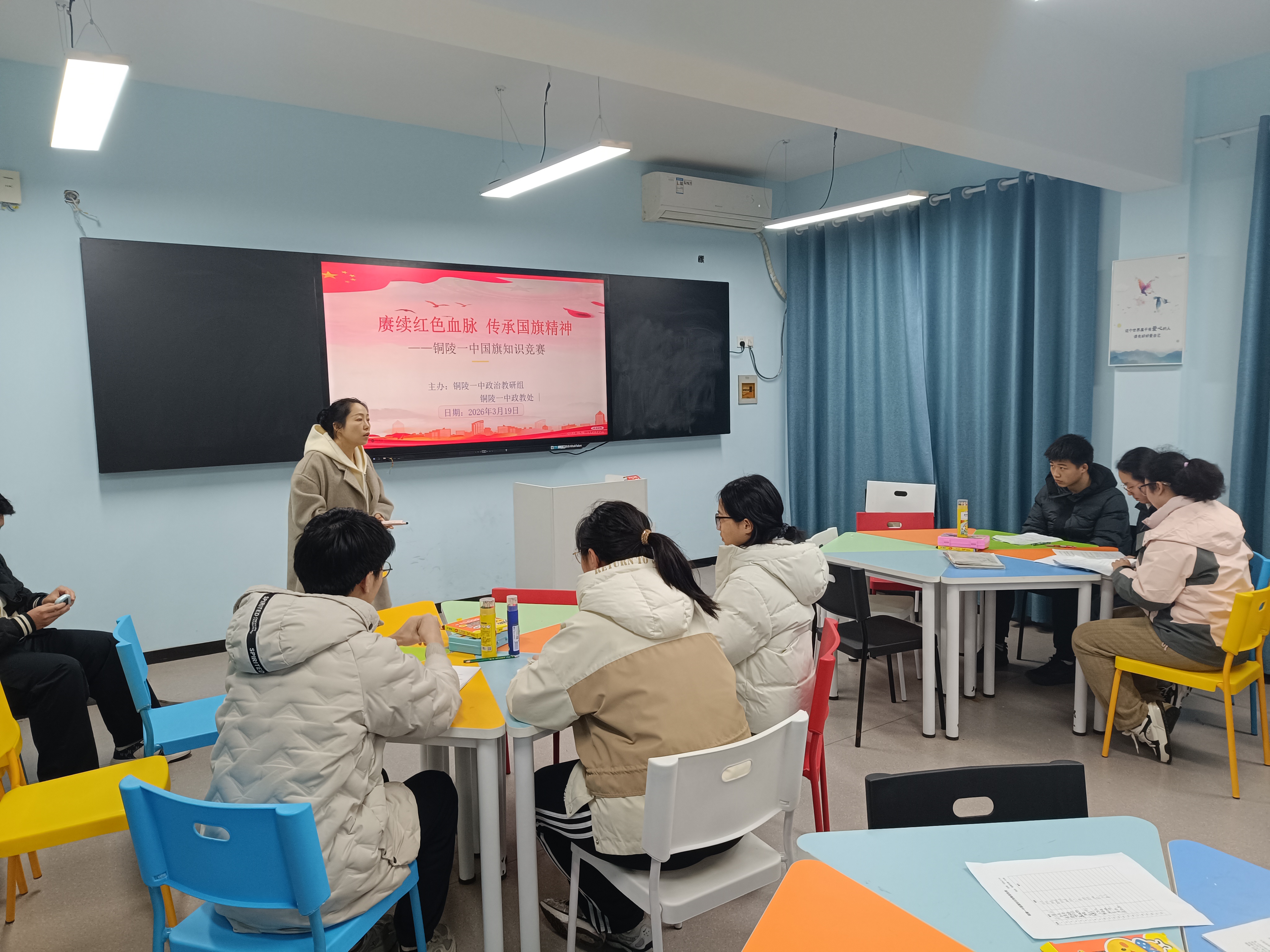为深入开展爱国主义教育,普及国旗知识与《中华人民共和国国旗法》,厚植青年学生家国情怀,2026年3月19日,铜陵一中政治教研组、校政教处联合组织了“赓续红色血脉 传承国旗精神” 国旗知识竞赛活动。学生踊跃参与,以赛促学、以学践行。